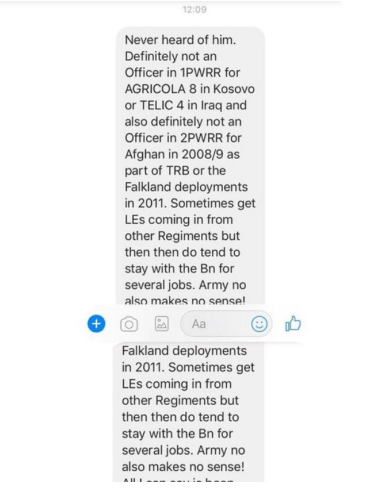 When asked about his career he claimed to be walking past his CO’s office one day and the CO popped his head out of the window and promoted him to second Lieutenant instantly, he claimed to be in the SIB and had been grilling top diplomatic targets for the UK government.