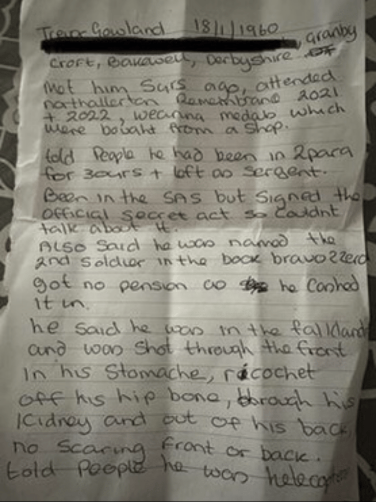 However this exposure is about yet another who decided it would be a good idea to order himself some parachute regiment T-shirts, Tie and badges, tattoos and a few medals for the final Walting flourish. Meet Trevor Gowland.