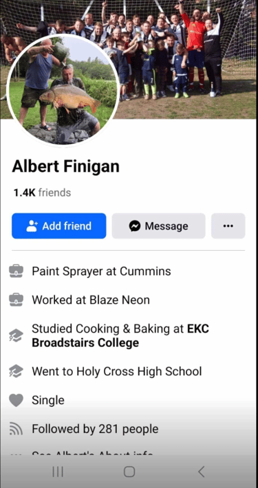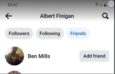 On looking at Finigans Facebook account we notice he’s mates with Ben Mills who runs the other scam We R Blighty