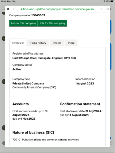 Like the scammers We R Blighty this lot come from the Kent area. The company was set up 1st August 2023