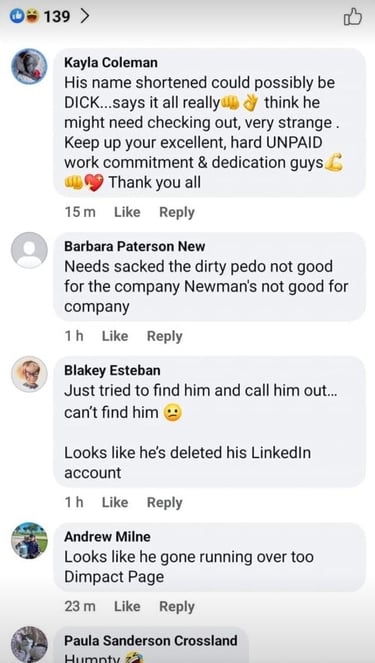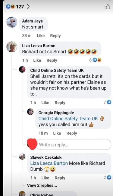 Two subjects Sam Miller and Michael Sheriff in particular have gone out of their way to use social media to launch cowardly attacks on genuine veterans for simply posting observations over these paedo hunters walting behaviour. In other words abusing their position for simply being caught out lying.
